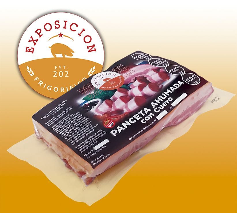Producto elaborado a base de los mejores cortes de pancera de cerdo, deshuesado, ahumada con cuero.